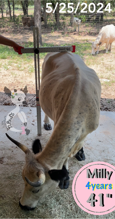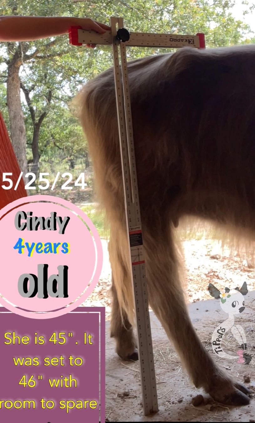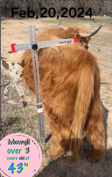 Rose was born May 19,2022. She was exactly 44” on her 2nd birthday. Her sire is Mowgli and Dam is Mooly