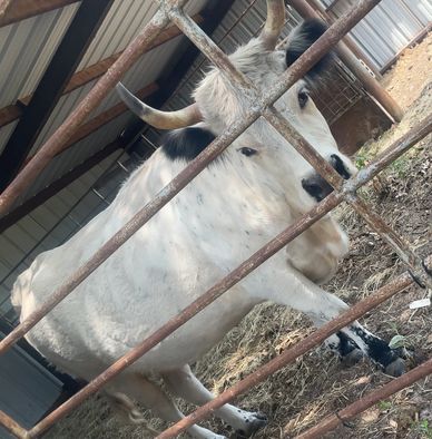 He is mine and my husband’s favorite right now. He loves cuddles and has yet to even push or use his horns to establish hierarchy. He’s the perfect bull for beginners.
