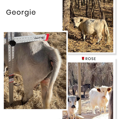 Birthdate:8-3-25. Suspected nonchondro and homozygous for white. 34” white dexter Georgie is her sire and Highpark Rose 🌹 is her Dam.